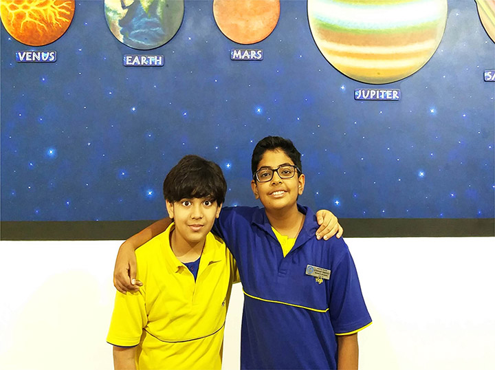 Congratulations Rushank and Aditya! Rushank Goyal and Aditya Rajan of Grade 8 put up an exemplary performance in the first round of \'Aryabhat Quiz\'. What makes this feat even more credible is that Aditya Rajan scored the HIGHEST MARKS (79) amongst all the participants across the nation, by answering correctly 16/20 questions.