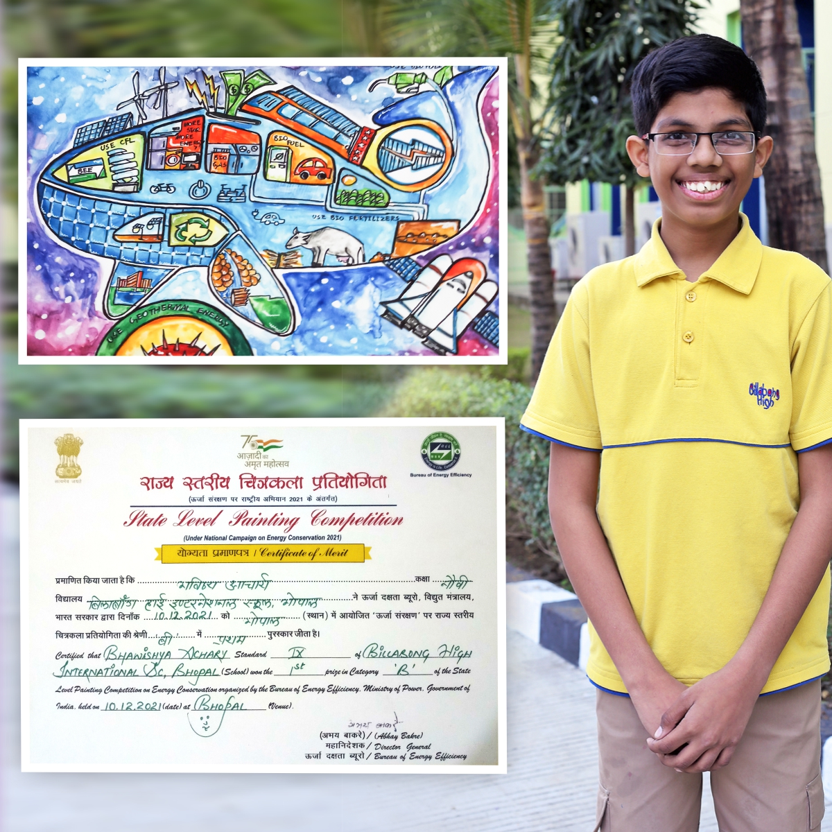 We’re delighted to announce that Bhawishya Achary, a Billabonger from grade 9 hits the hattrick by winning the State Championship three times in the Painting Competition organised by the Ministry of Power (Govt. of India) under the National Awareness Campaign.